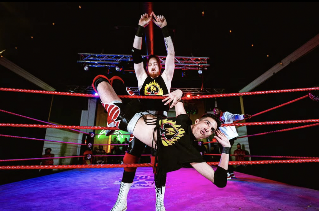 In less than five years of existence, The Flamin' Aces – “Playboy” Zaye Perez and “Hot Shot” Spencer Scott – have set the PNW tag team wrestling scene on fire, establishing themselves as one of the most sought after pairings the region has to offer. In a tag team scene that is jam-packed with talent and charisma, setting yourself apart isn't an easy task, but it's something The Flamin' Aces have accomplished in town after town. I was in the building when they debuted for 365 in Victoria – a city with a crowd with little knowledge of indie wrestling outside of their home promotion(s). When Perez and Scott came out from behind the curtain, it took the 365 crowd about a half-trip around the ring to turn into absolute lunatics for the Flamin' Aces. Cheers, claps, shrieks; the Aces brought it out of us before they even stepped into the ring. Once they got between the ropes, The Flamin' Aces backed up the hype, flipping and diving around the ring like maniacs, while also beautifully executing non-flipping wrestling maneuvers (important!). Their in-ring heroics and magnetic personalities have made Perez and Scott favourites on the Canadian west coast, an area that has embraced them and welcomed them from day one. The duo has been frequent guests here on the Canadian west coast working in all of the dopest promotions including 365, BOOM! Invoke, NEW and Wrestlecore.